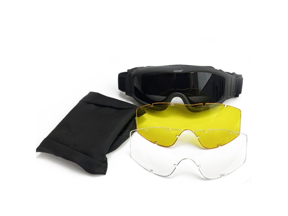 Три цвета линз: прозрачный, желтый, черный. Черные линзы идеально подходят