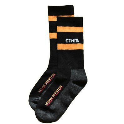 Стильные носки Heron Preston для любителей уличного стиля придутся по душе. Будут отличным дополнением к твоему образу, позволяя правильно расставить акценты. Длина до середины голени, закрывает щиколотку и нижнюю часть голени. На верхней части вставка из рубчатой ткани, обеспечивающая надежную фиксацию. Яркий дизайн для уверенных в себе людей. В области голени расположено слово “стиль” которое говорит само за себя. Также название бренда Heron Preston расположено вдоль носка.