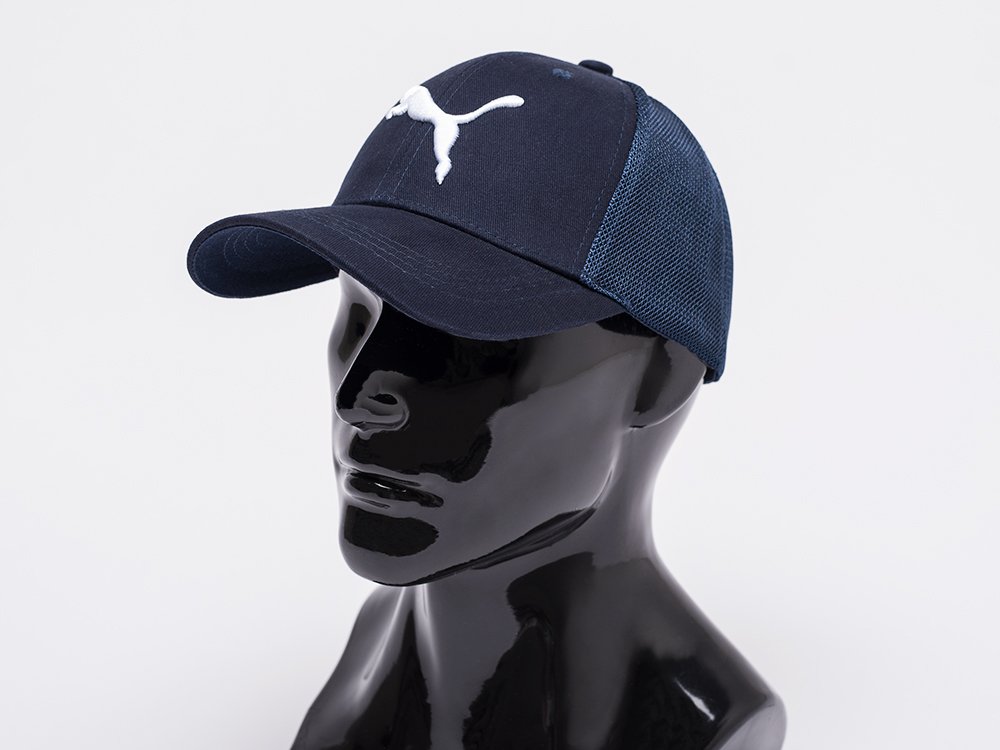 Модная кепка Puma синего цвета выполнена из плотной ткани с преобладанием хлопка. Бейсболка защитит вас от солнечных лучей и небольшого дождя. Модель станет хорошим аксессуаром для прогулки или похода на природу, занятий спортом. Изделие украшено крупным вышитым белым логотипом фигурки животного на передней части, которая повторяется выштамповкой на лицевой стороне золотистого оттенка фиксатора. Две трети верха изделия составляет сетка, которая обеспечивает достойную вентиляцию. Классический козырек и золотистая окантовка для проушины регулировочного хлястика завершают декор модели.