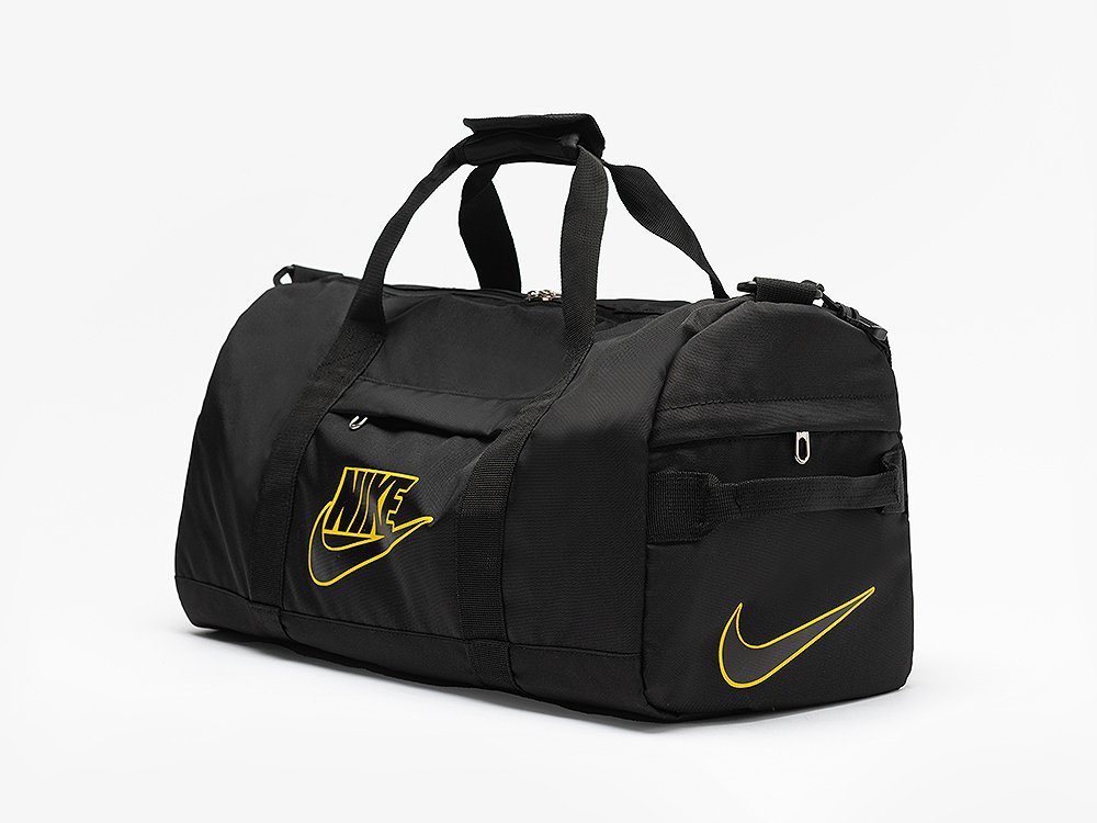 Спортивная сумка Nike черного цвета выполнена из качественного текстиля. В ней удобно носить учебники или спортивную одежду и обувь. Состоит из двух отделений на молнии и одного кармана спереди. Сумка имеет съемный плечевой ремень на карабинах и носится как через плечо, так и в руках. Подойдет на каждый день для учебы и тренировок. Изделие декорировано черными ручками, простроченными по контуру середины сумки и контрастным принтом логотипа бренда на ткани. По бокам имеются мелкие украшения из ткани, из которой выполнены ручки. Усилитель ручек декорирован в основной тон серым цветом.