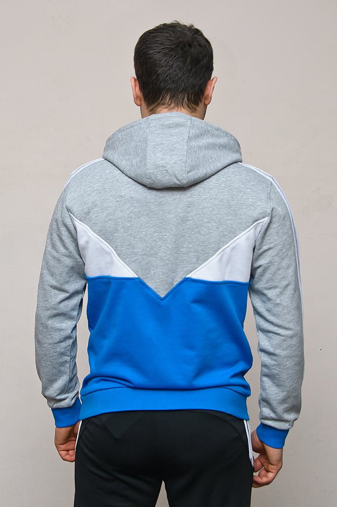Свитшот от спортивной марки Adidas выполнен из приятного на ощупь материала синего и белого цветов. Модель прямого кроя с логотипом на груди. Детали: капюшон на шнурке, длинные рукава, трикотажные манжеты и кант по низу, мягкая внутренняя отделка.