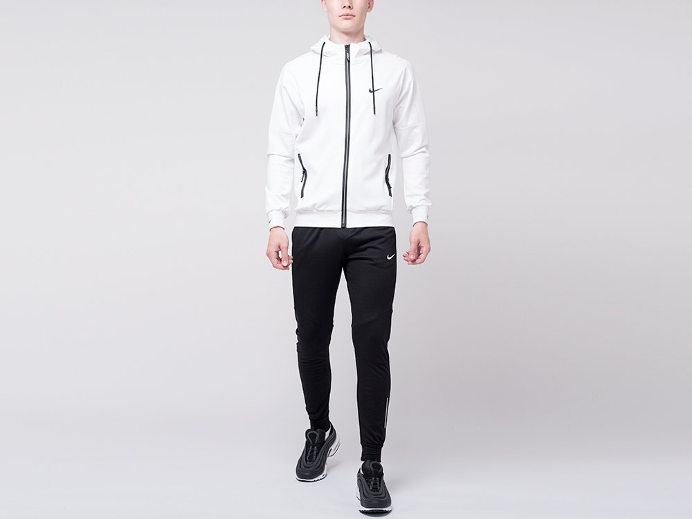 Модный спортивный костюм Nike черно-белого оттенков выполнен на основе синтетики.