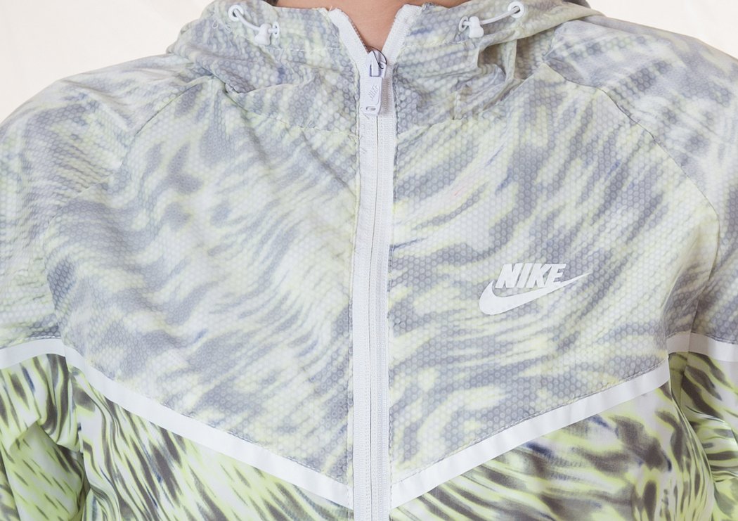Ветровка Nike выполнена из гладкого непромокаемого текстиля. Детали: ветровка прямого кроя, с застежкой на молнию, капюшоном на кулиске.