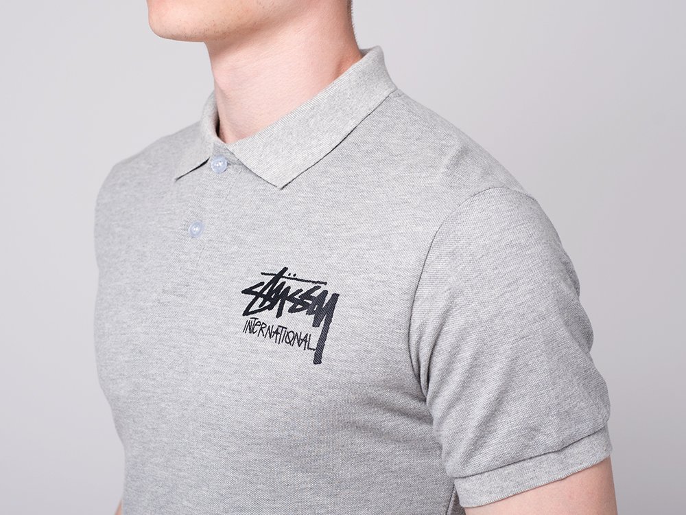 Мужское поло Stussy выполнено из хлопкового трикотажа в серой расцветке.